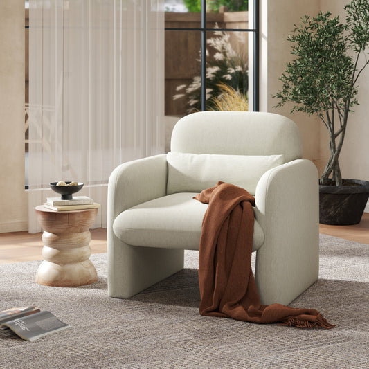 Roundhill Furniture Dylan Modern Upholstered Barrel Armchair, Cream White