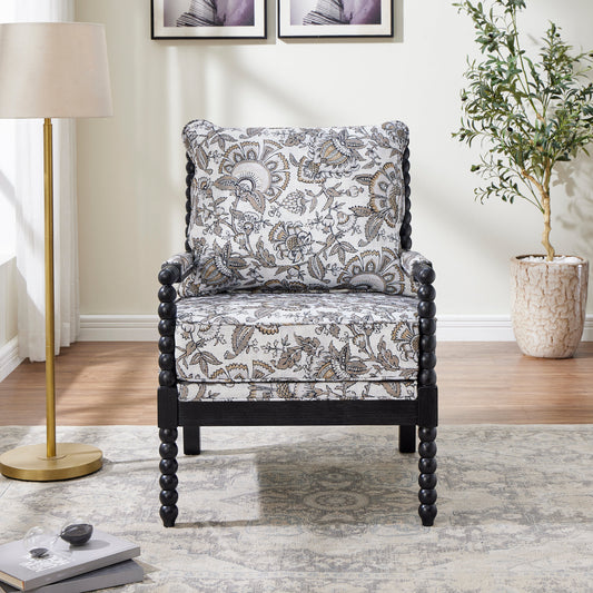 Roundhill Furniture Belvoir Upholstered Spool Accent Chair with Turned Wood Frame