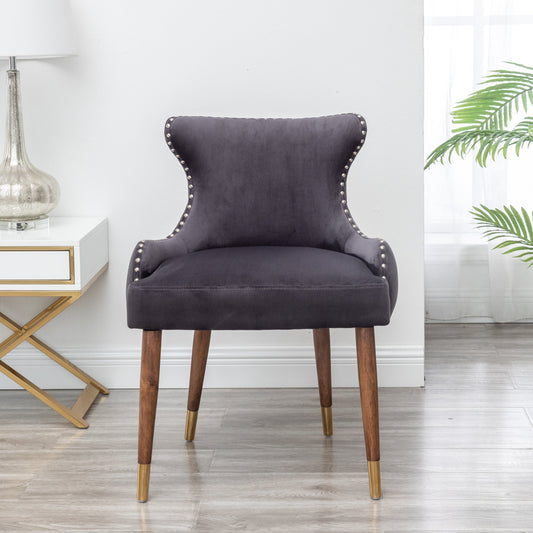 Lindale Contemporary Velvet Upholstered Nailhead Trim Accent Chair, Gray