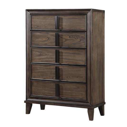 Aetheria Contemporary Wood 5-Drawer Chest in Dark Brown