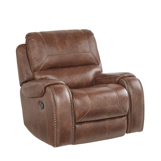 Achern Brown Leather-Air Nailhead Manual Reclining Living Room Collection