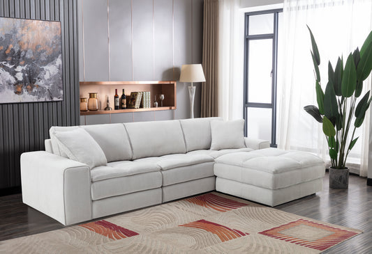 Breton Contemporary Fabric Tufted Modular Sectional Sofa with Ottoman, Oyster