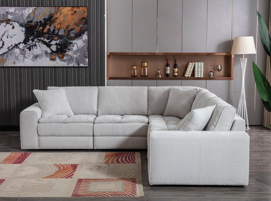 Breton Contemporary Fabric Tufted 5 Piece Sectional Sofa, Oyster