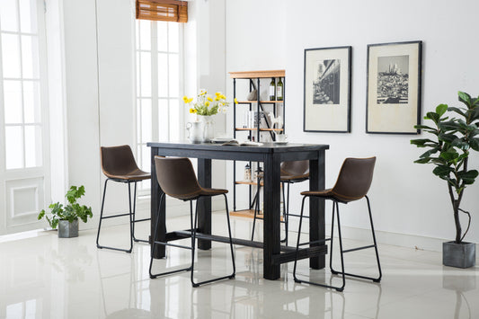 Bronco Antique Wood Finished Bar Dining Set: Table and Four Bar Stools, Brown