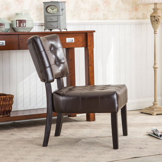 Brown Blended Leather Tufted Back Accent Chair with Oversized Seating