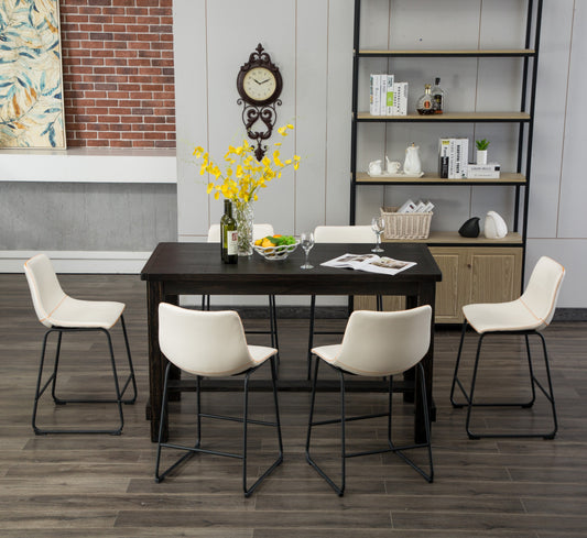 Bronco Antique Wood Finished Counter Height Dining Set: Table and Six Chairs, White