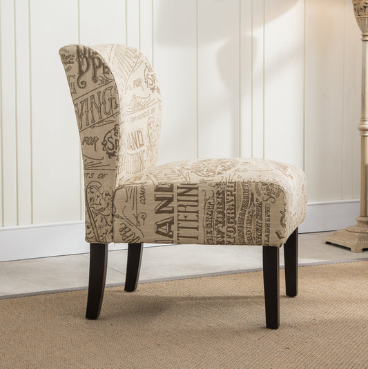 Capa Chalkboard Light Print Fabric Armless Contemporary Accent Chair