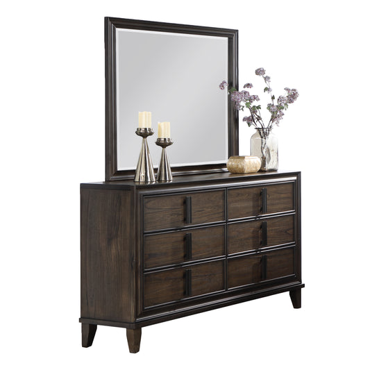 Aetheria Contemporary Wood 6 -Drawer Dresser with Mirror in Dark Brown