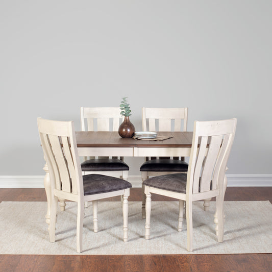 Arch Weathered Oak Dining Set: Table with Extension Leaf, Four Chairs