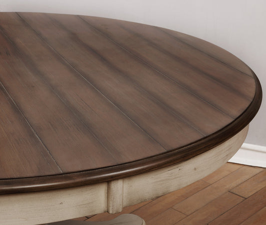 Arch Weathered Oak Round Dining Table with Pedastal Base