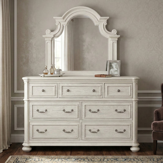 Roundhill Furniture Nelson 7-Drawer Bedroom Dresser with Mirror, Antique White