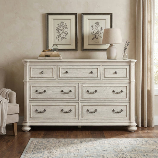 Roundhill Furniture Nelson 7-Drawer Bedroom Dresser, Antique White