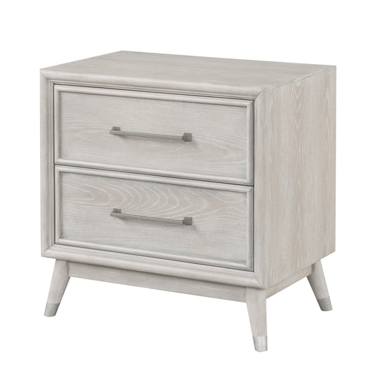 Roundhill Furniture Seluna 2-Drawer Bedroom Nightstand with built-in USB port, Gray Oak Finish