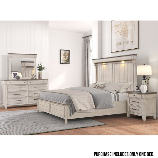 Walcott Touch LED Lighting Panel Bed, Weathered Dusty-taupe Finish