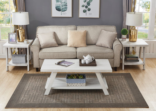 Athens Contemporary Wood Shelf Coffee Table Set in White Finish