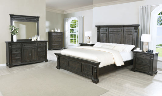 Maderne Traditional Wood Panel Bedroom Collection, Antique Walnut Finish