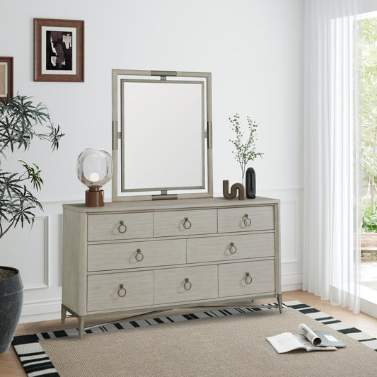 Mantalia Solid Wood 8-Drawer Dresser and Mirror with Metal Frame, Champagne
