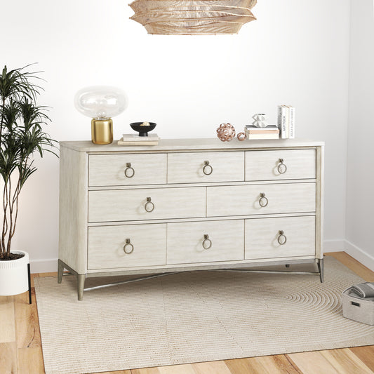 Mantalia Solid Wood 8-Drawer Dresser with Metal Frame, Champagne