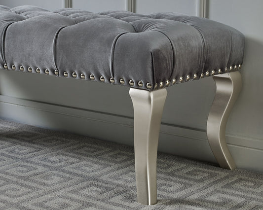 Decor Maxem Tufted Fabric Upholstered Seat with Nailhead Trim Bench, Gray