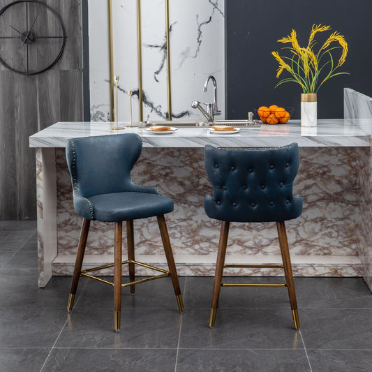 Roundhill Furniture Nevis Mid-century Modern Faux Leather Tufted Nailhead Trim Counter Stools, Set of 2