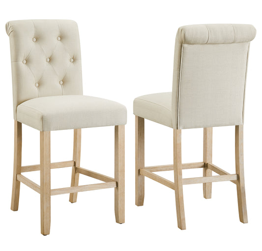 Siena Counter Height Button Tufted Back Solid Wood Stools, Set of 2, Tan
