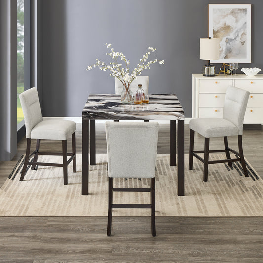 Roundhill Furniture Cavira Modern Faux Marble Counter Height Dining Table with 4 Stools