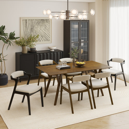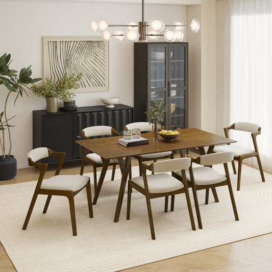 Roundhill Furniture Lavin Modern 7-Piece Dining Set, Walnut Finished Dining Table with 6 Chairs