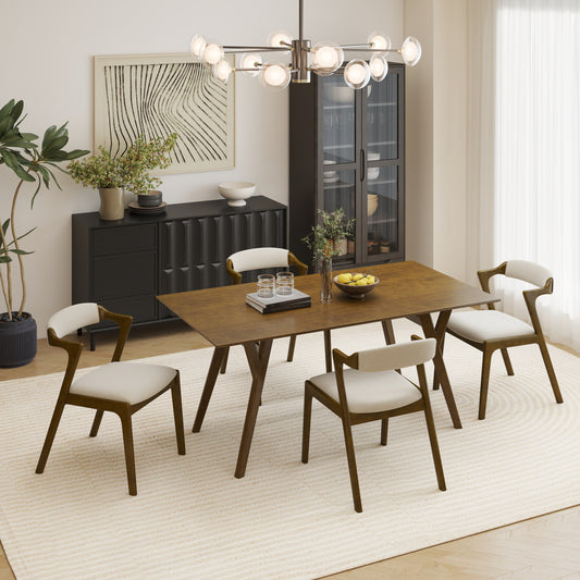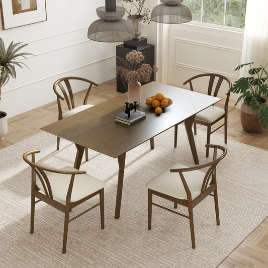 Roundhill Furniture Lavin Modern 5-Piece Dining Set, Walnut Finished Dining Table with 4 Wishbone Chairs