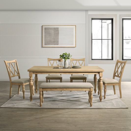 Roundhill Furniture Verta 6-Piece Dining Table with 4 Cross Back Dining Chairs and Bench, Light Oak Finish