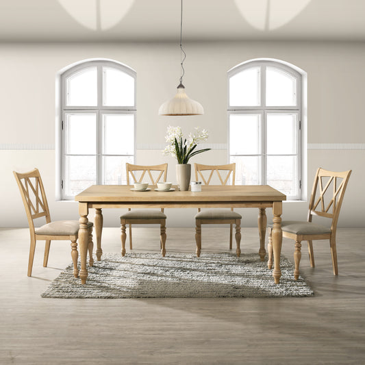 Roundhill Furniture Verta 5-Piece Dining Set, Dining Table with 4 Cross Back Dining Chairs, Light Oak Finish