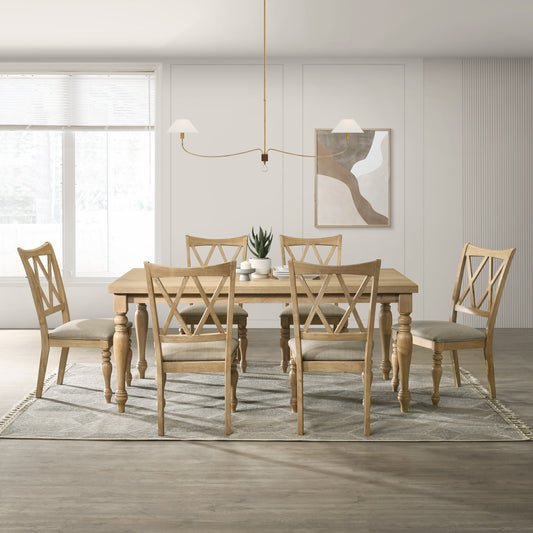Roundhill Furniture Verta 7-Piece Dining Table with 6 Cross Back Dining Chairs, Light Oak Finish