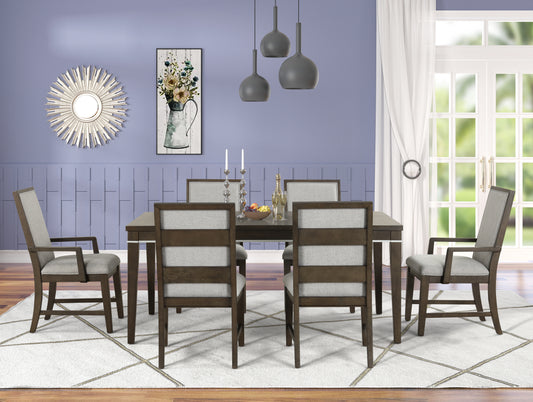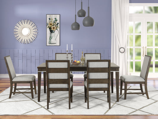 Biony Espresso Wood Dining Set with Gray Fabric Nailhead Chairs