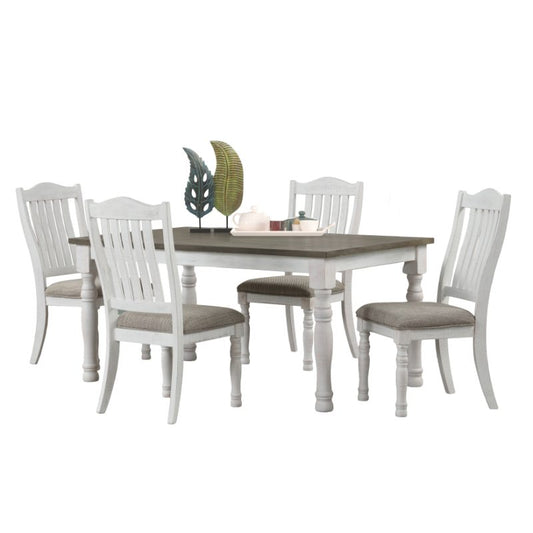 Roundhill Furniture Belleza French Country 5-Piece Dining Set in Antique White and Weathered Oak Finish