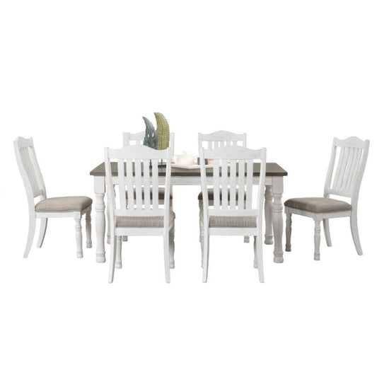 Ebret Farmhouse 7-Piece Two-tone Distressed Dining Set, Brown and White