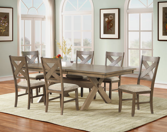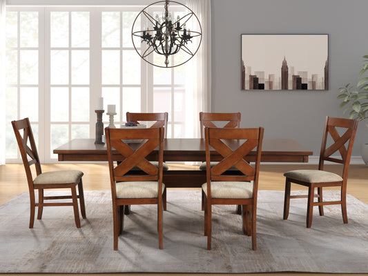 Raven Wood 7-Piece Dining Set, Extendable Trestle Dining Table with 6 Chairs, Glazed Pine Brown