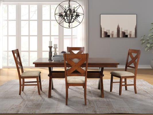 Karven Wood 5-Piece Dining Set, Extendable Trestle Dining Table with 4 Chairs, Dark Hazelnut