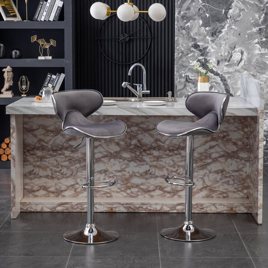Masaccio Velvet Upholstered Adjustable Swivel Barstool, Set of 2, Gray