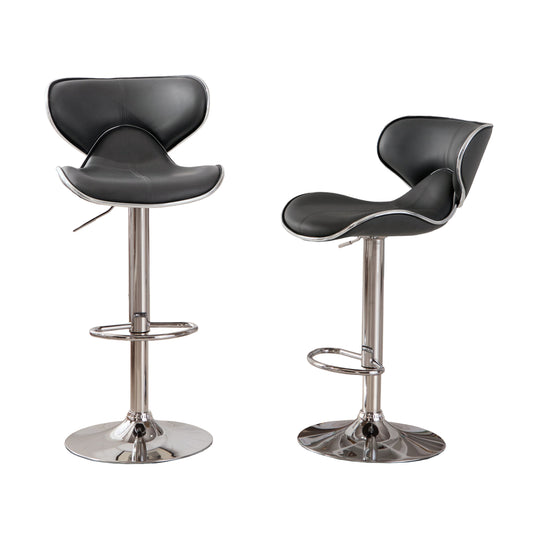 Masaccio Grey Cushioned Leatherette Upholstery Airlift Adjustable Swivel Barstool with Chrome Base, Set of 2