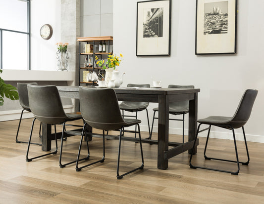 Lotusville 7-Piece Antique Black Finish Wood Dining Table with 6 Gray Faux Leather Chairs Set