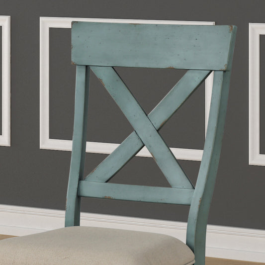 Prato Two-Tone Wood Cross Back Upholstered Dining Chairs, Set of 2