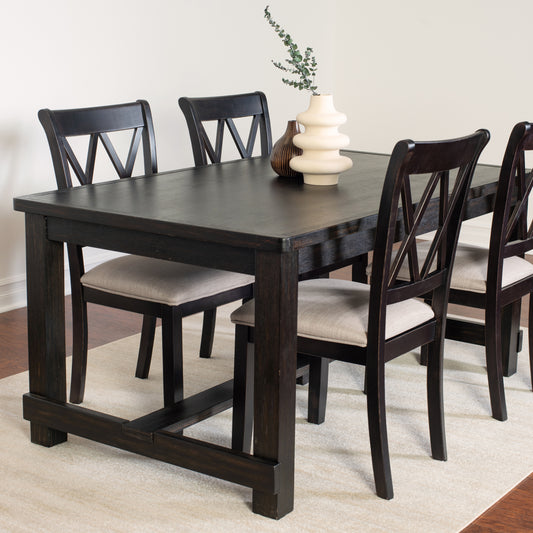 Hensfield Contemporary 7-Piece Dining Set, Dining Table with 6 Cross-back Chairs, Rich Black