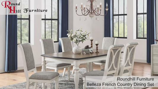 Roundhill Furniture Belleza French Country Dining Table, Antique White and Weathered Oak Finish