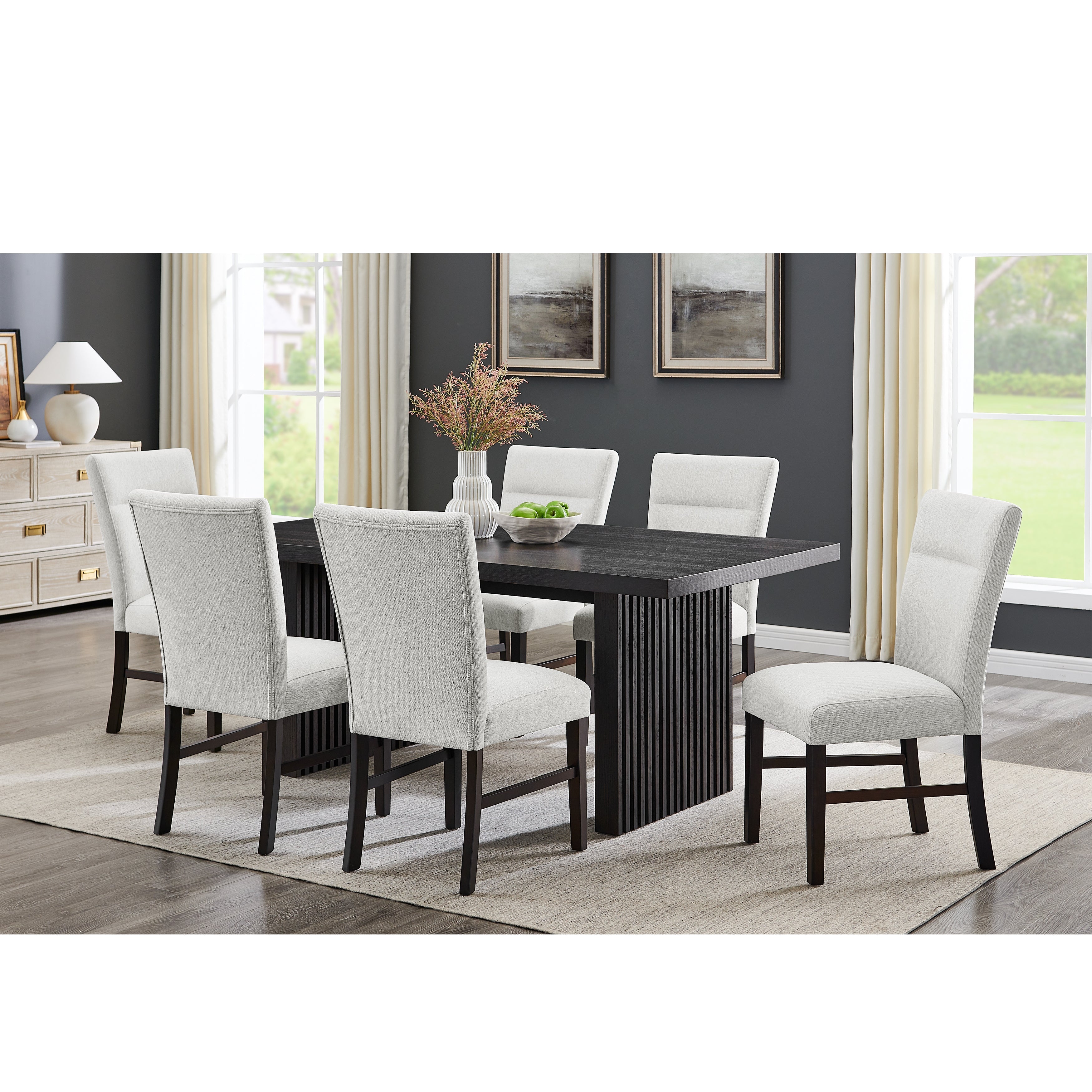 Roundhill Furniture Madison Contemporary Dining Table, Slat-Fluted Base, Espresso