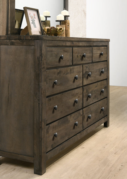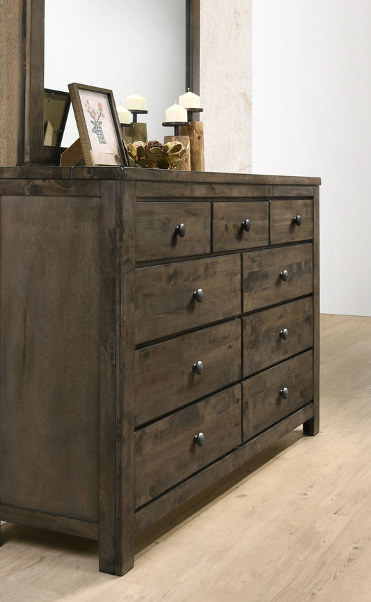 Broval 179 Light Espresso Finish Wood 9 Drawers Dresser and Mirror
