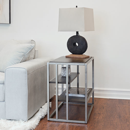 Roundhill Furniture Corbeta Metal Frame Wood Living Room End Table with Shelf, Aged Graphite