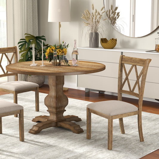 Windvale 5-Piece Dining Set, Cross-Buck Round Table with 4 Stylish Chairs