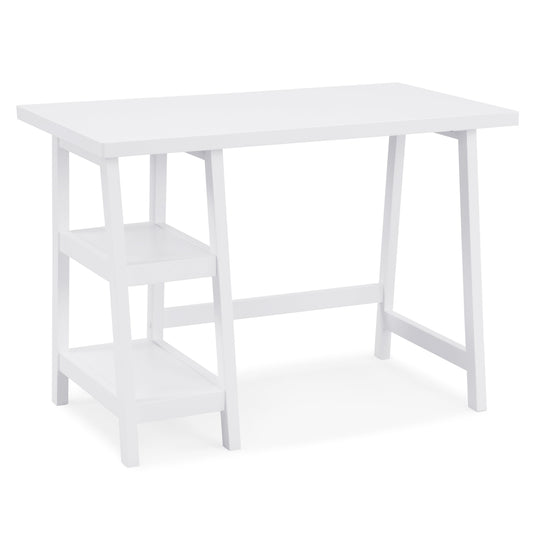 Roskilde Mid-Century Modern Wood Writing Desk with Hutch, White