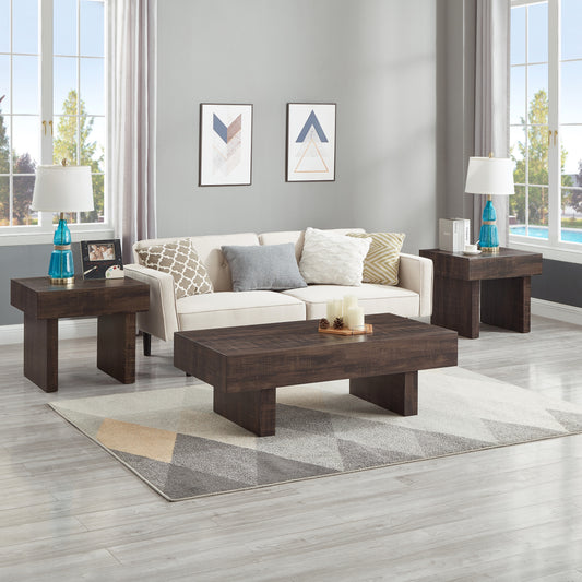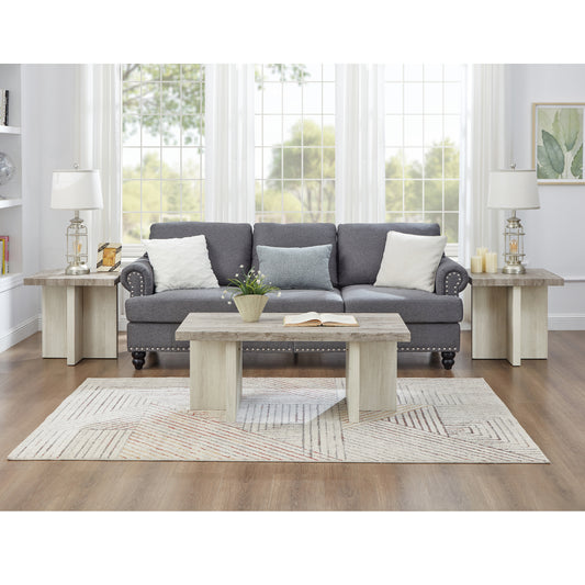Roundhill Furniture Luno 3-Piece Coffee Table Set, Coffee Table and Two End Tables