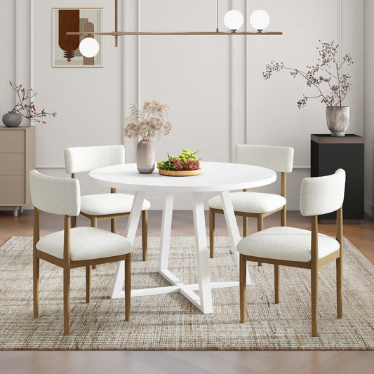 Roundhill Furniture Edo 5-Piece Dining Set, Round Trestle Table and 4 Upholstered Chairs