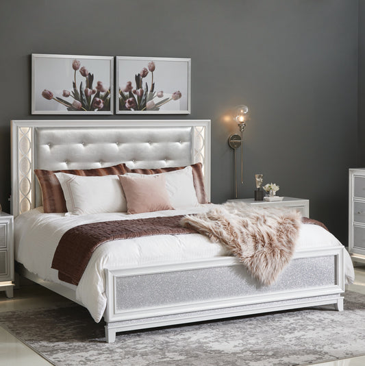 Galaxy Upholstered Tufting Panel Bed with LED Lights, Pearlized White